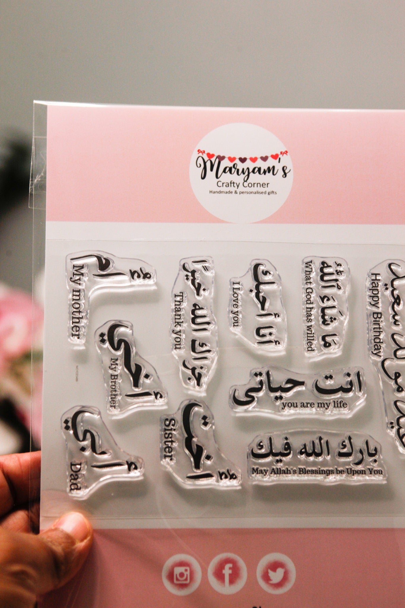 A6 set of Arabic Mother, Father, Brother sister and many more stamps, Arabic greeting cards stamping, islamic stamps